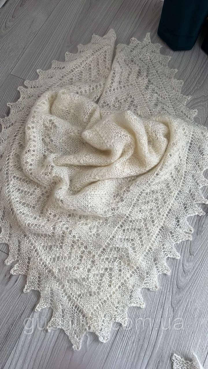Хустка тепла з козячого пуху в'язанна, ручної роботи. Пух м'який, шовковистий, приємний на дотик.